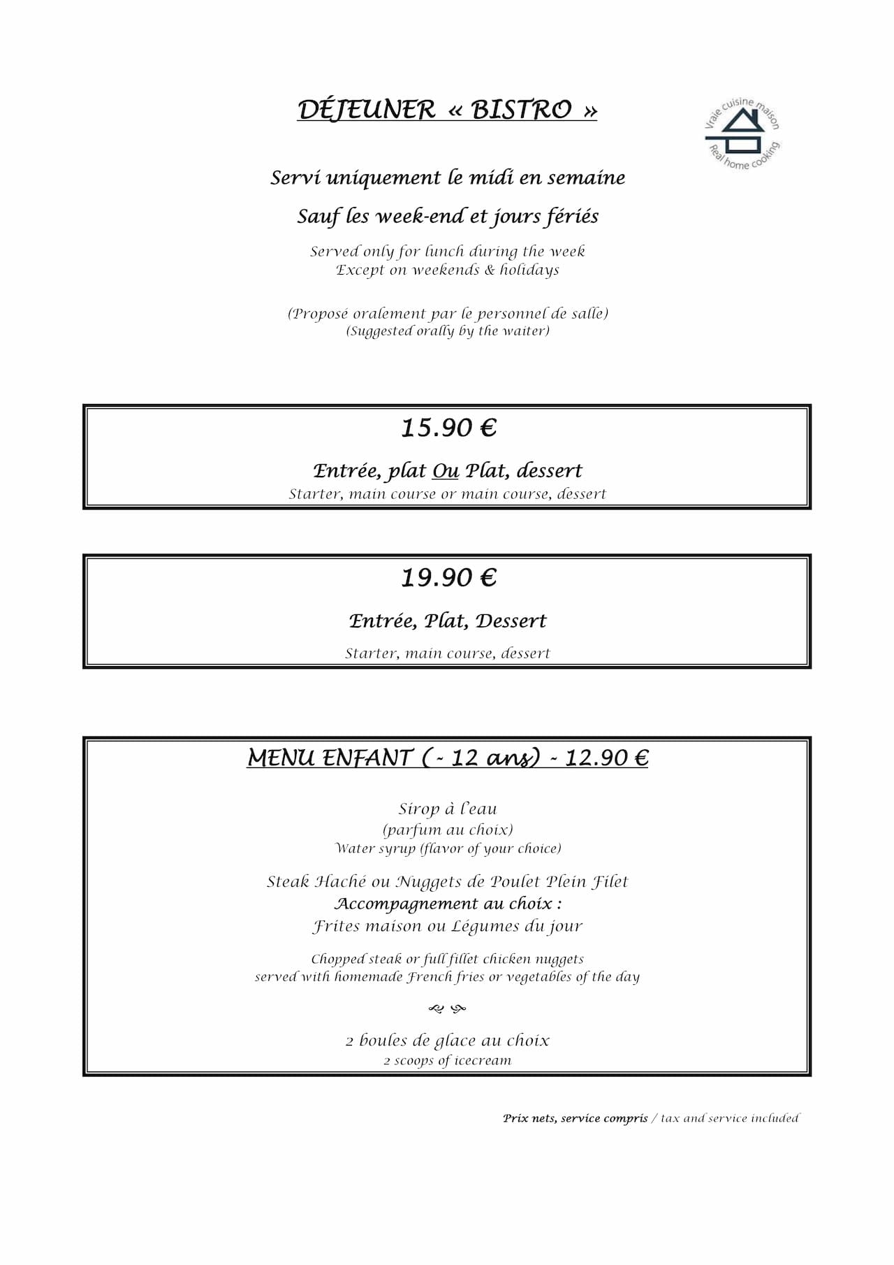 Tous nos plats sont « Faits Maison », élaborés et cuisinés sur place à partir de produits bruts.