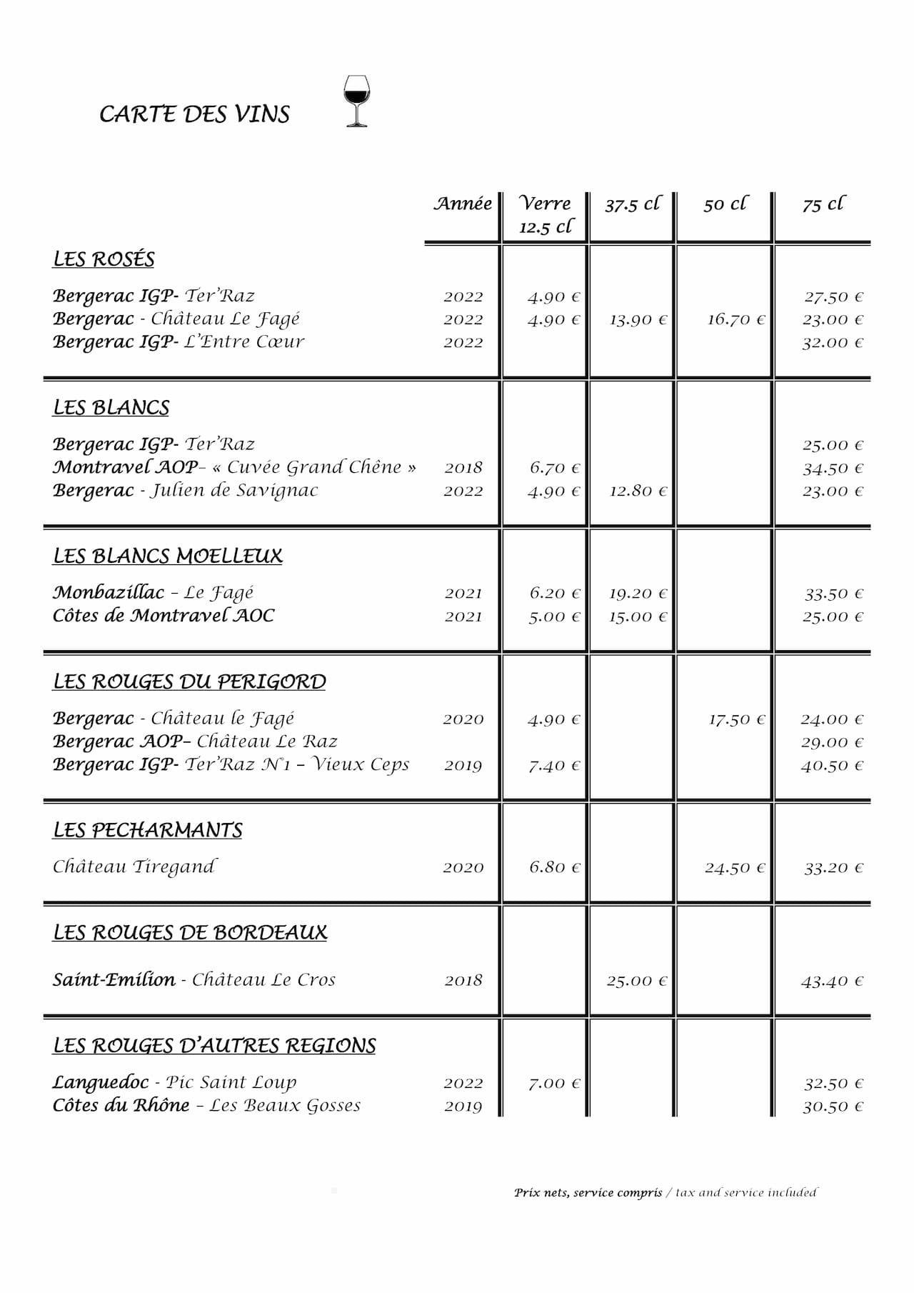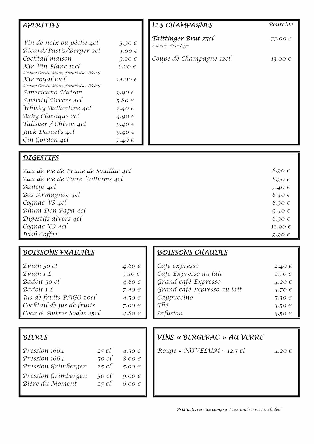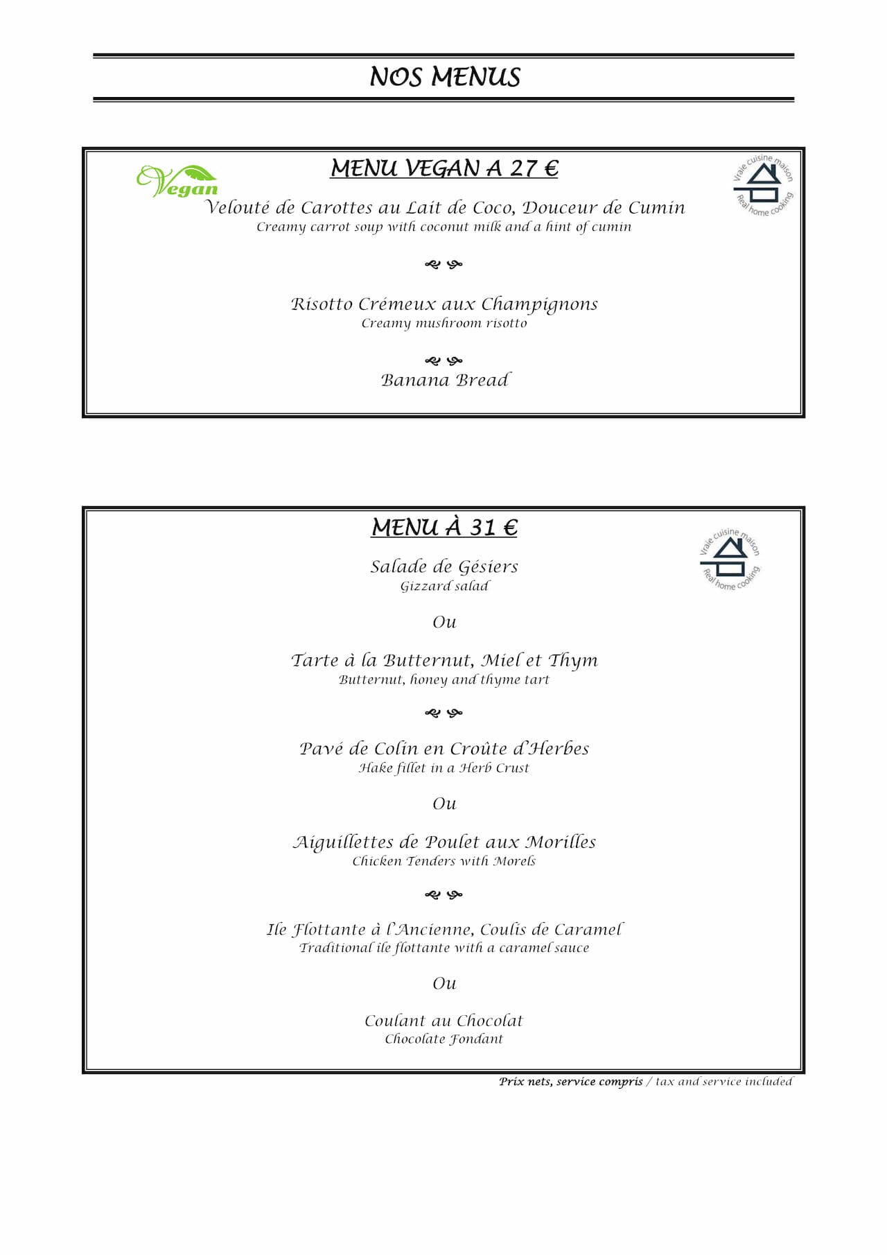 Nos menus et la carte